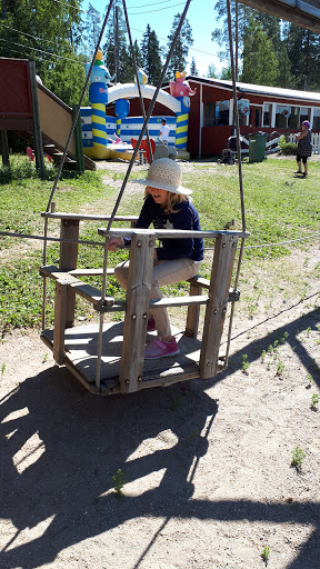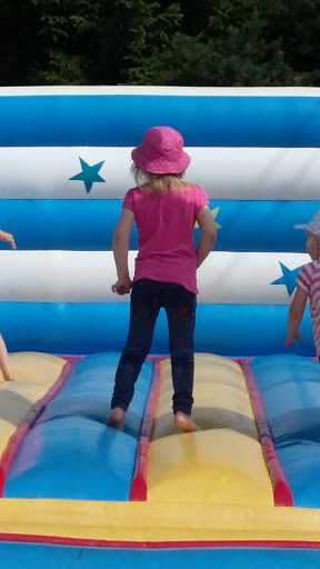 Voit myös kiipeillä leikkikentän telineillä tai temppuilla pomppulinnassa.